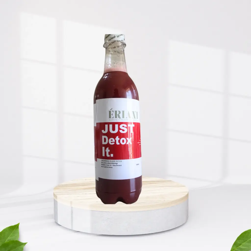 The Moringa Elixir Detox, fermented with Japanese technology using ginger, garlic, lemon, moringa, and lactic acid, supports deep body cleansing by flushing out toxins, improving digestion, and enhancing nutrient absorption. It also strengthens immunity, boosts energy, reduces inflammation, and promotes radiant skin and overall vitality